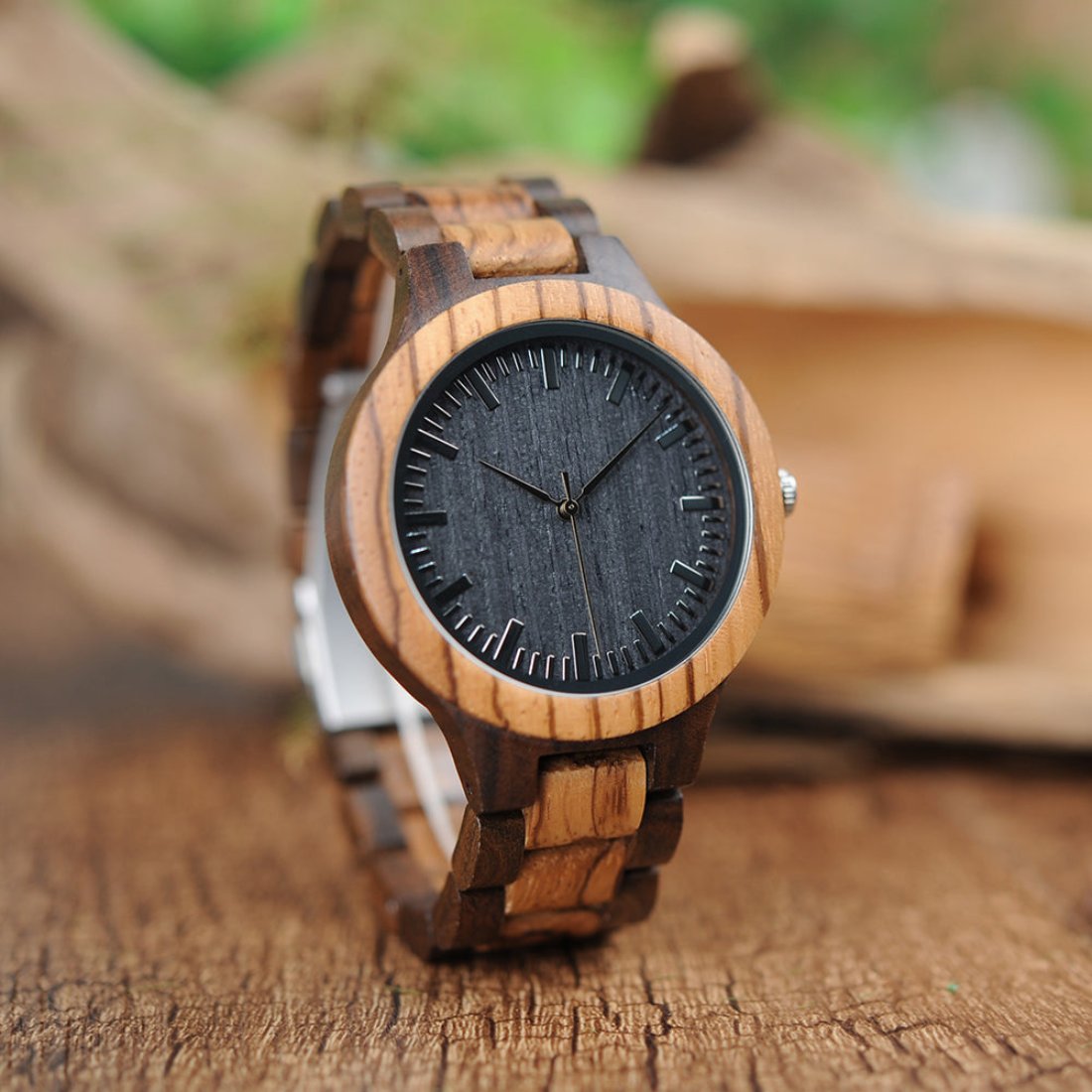 A wood watch is for the discerning individual who values one-of-a-kind pieces. Stay stylish with this rugged and natural two-tone wood watch design. Featuring an adjustable wooden band that highlights its beautiful natural wood grain, the Two Tone also includes a handmade bamboo cylinder for a unique touch.