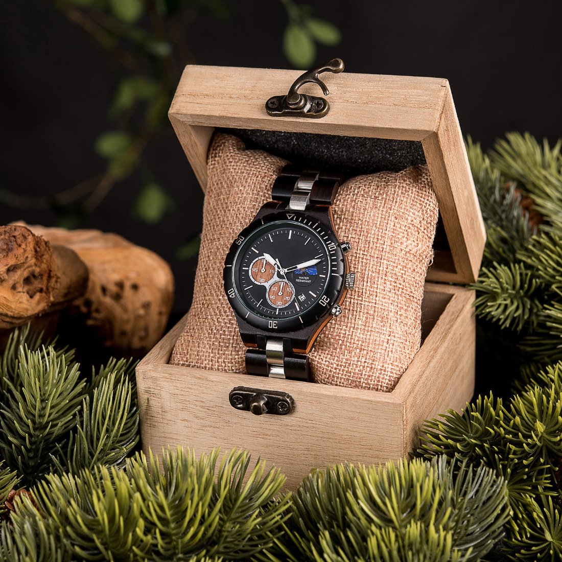 A wood watch is perfect for the discerning individual who values one-of-a-kind pieces. Look stylish while keeping track of your days with this unique and handcrafted wood watch. It has an adjustable wooden band that showcases its beautiful natural wood grain. The Calendar also comes with a handmade bamboo cylinder.
